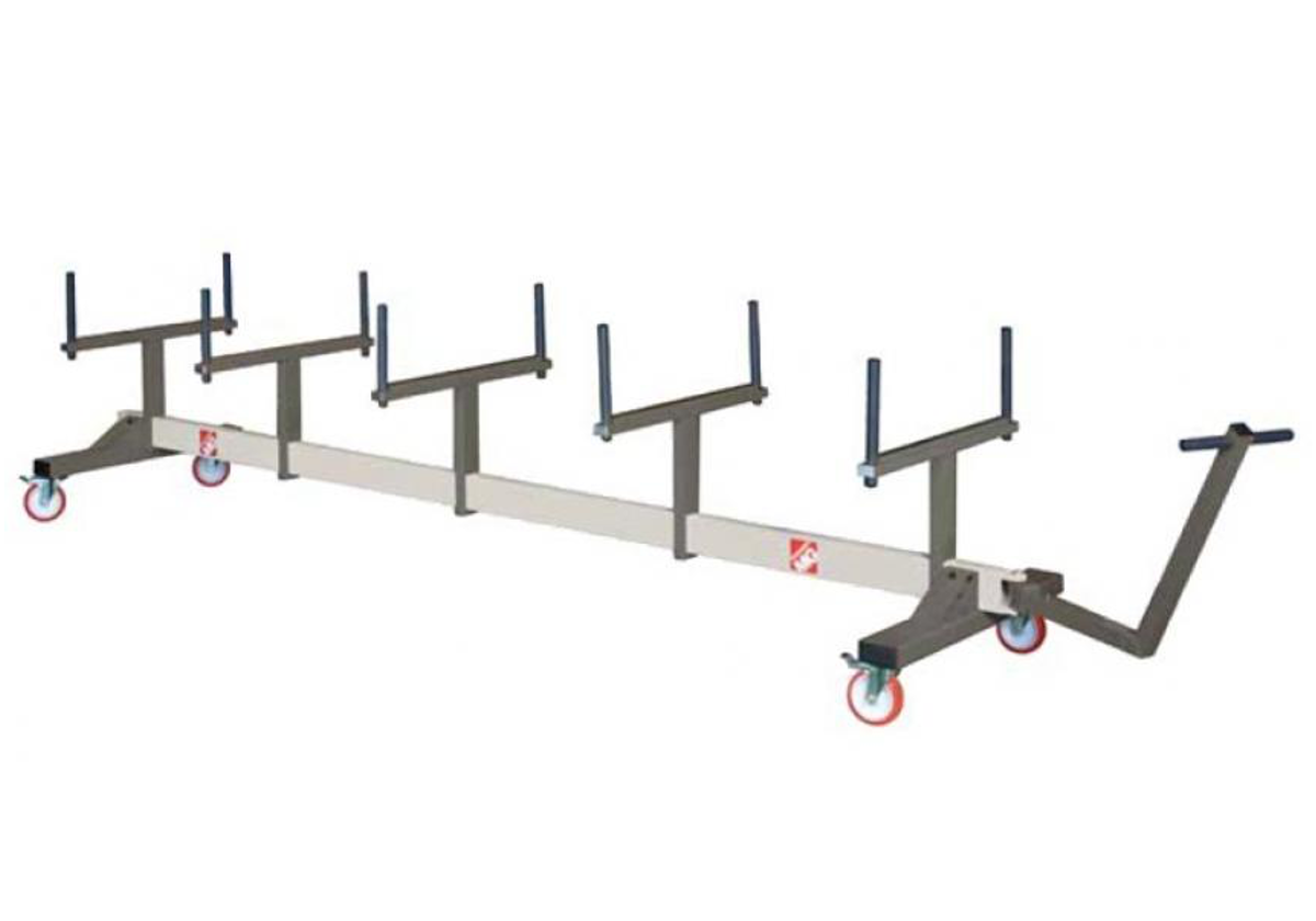 Carro porta janelas para colocação e transporte de 9 janelas montadas separadas para evitar riscos.